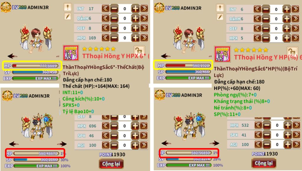 | HP Max | 180 | 360 | Kháng trạng thái% | 1 | 4 |