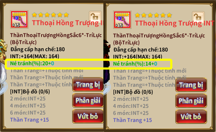 Nếu chỉ cần tập trung vào 1 chỉ số như Né Tránh%, Kháng trạng thái% thì chỉ cần ép thần trang trắng / lục ( các thần trang ít dòng ) để chọn dòng mình cần . Thần trang đỏ các chỉ số sẽ nhảy vào các dòng ko cần.